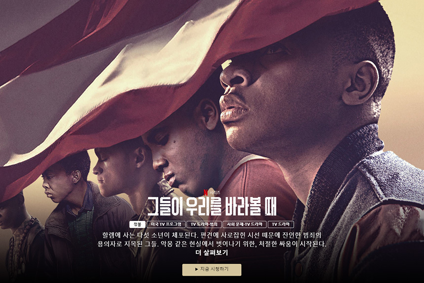 “그들이 우리를 바라볼 때”는 넷플릭스에서 제작된 4부작 미니시리즈입니다. 1989년 4월 미국 센트럴 파크에서 일어난 사건을 모티브로 제작되었고 미국에서 상당히 화제가 되었던 작품입니다.