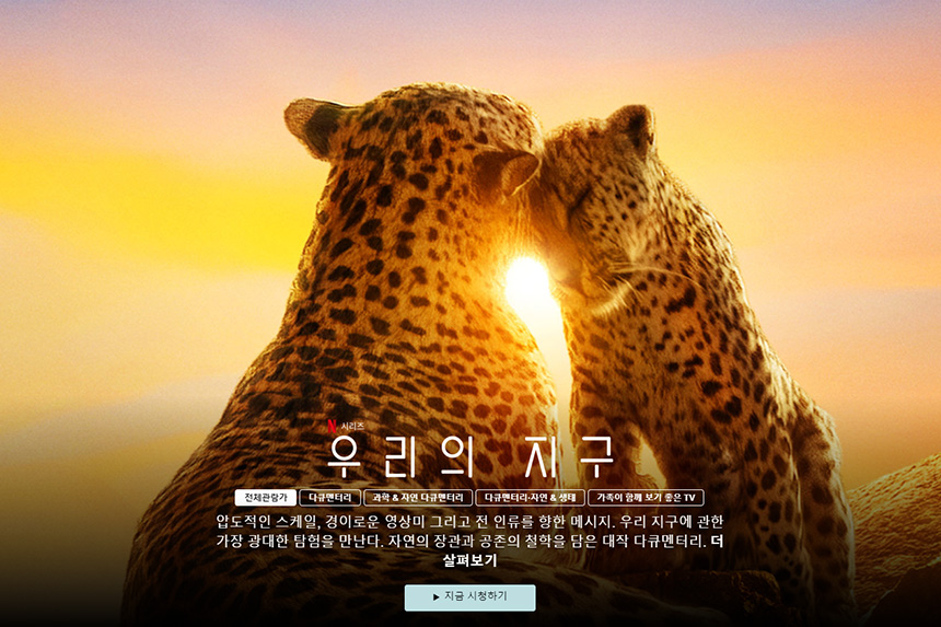 “우리의 지구”는 자연 다큐멘터리입니다. 압도적인 영상미를 자랑하기 때문에 온가족이 함께 보기 좋은 작품이라고 할 수 있습니다. 큰 화면에서 보면 감동이 더 커집집니다.