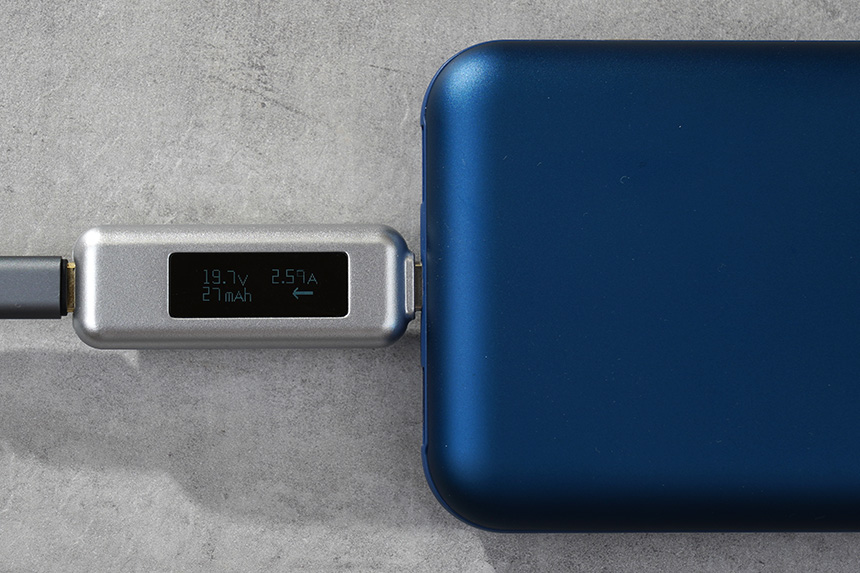 출력의 경우에는 약 50W 정도가 측정되었습니다. 최근에 인기 있는 PD 충전을 지원하는 노트북 등에서 활용하면 좋을 것 같습니다. 그리고 입력과 출력은 상황에 따라서 전압이나 전류가 달라질 수 있습니다.