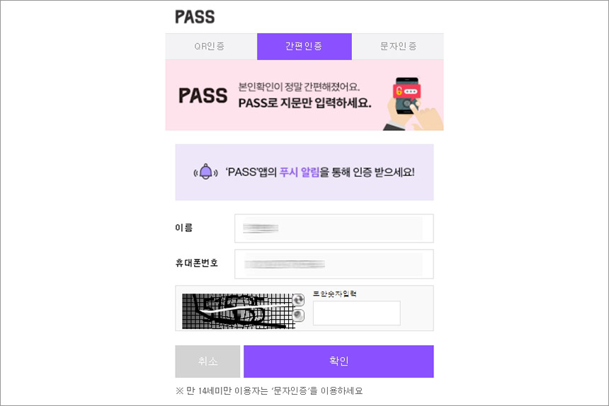 그리고 스마트폰에 설치된 PASS 앱의 인증 수단에 지문 기능을 추가했으면 편리하게 본인인증을 할 수 있습니다. 간편하게 인증을 할 수 있다는 점이 패스 앱의 가장 큰 장점입니다.