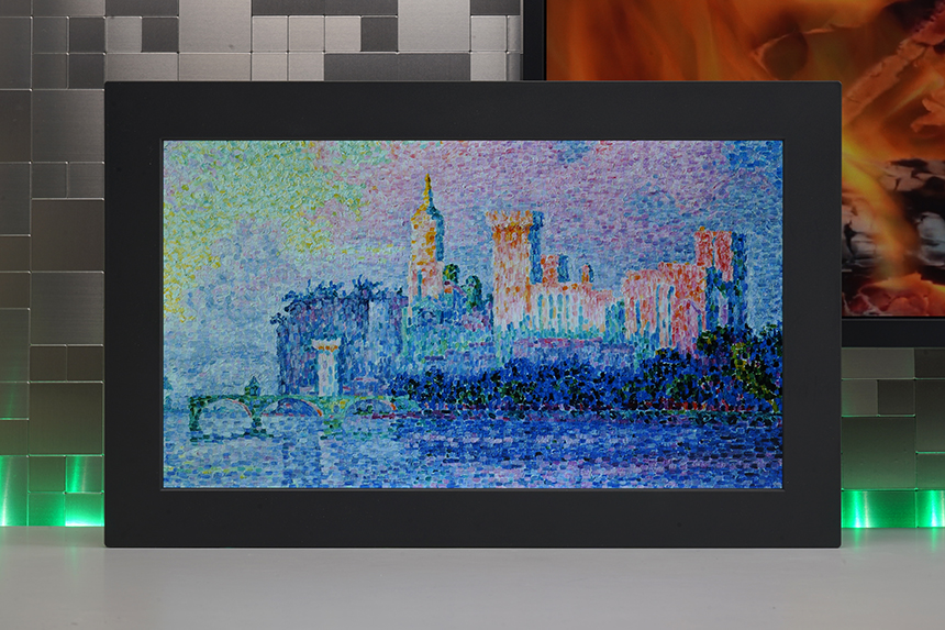 넷기어 뮤럴 MC315 디지털 액자는 명화나 자신이 촬영한 사진들을 선명한 화면으로 감상할 수 있습니다. 그리고 주변 광 센서가 탑재되어 있어서 주변 밝기에 맞게 조도가 자동으로 조절됩니다.