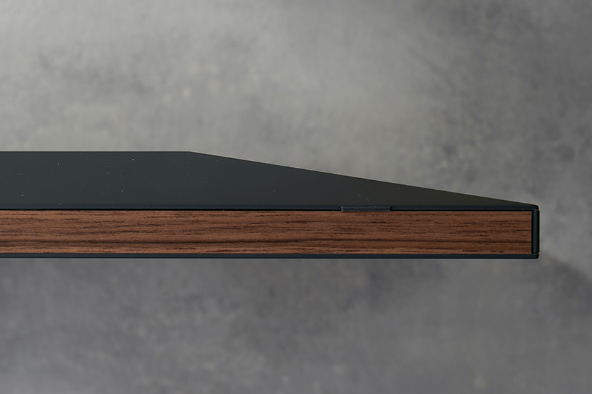 넷기어 뮤럴 MC315 디지털 액자의 테두리를 확인해 보면 프리미엄 월넛 우드 그레인이 적용되어서 아날로그 형태 액자와 같은 느낌을 줍니다. 그리고 바닥에 닿는 부분에는 고무 지지대가 배치되어 있습니다.