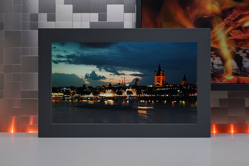 넷기어 뮤럴 MC315 디지털 액자의 전면에는 15.6인치 FULL HD IPS 디스플레이가 탑재되었습니다. 특히 붓 터치의 생생함을 전달하는 트루 아트 기술과 빛 반사를 줄여주는 안티 글레어 처리가 되어 있다는 점이 주목할 만한 부분입니다.
