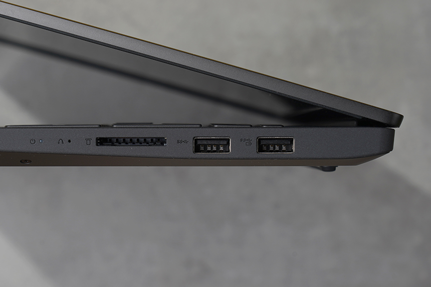 반대쪽 옆면에는 독특하게도 마이크로SD가 아닌 SD카드 리더기와 2개의 USB 3.1 포트가 배치되어 있습니다. 확장성은 크게 부족하지 않은 편이라고 생각되었습니다.