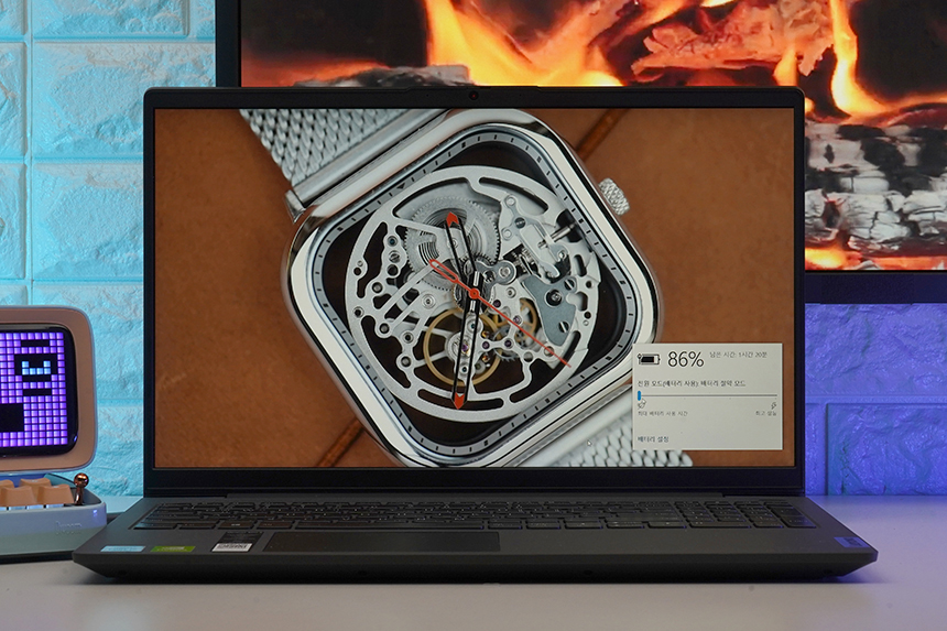 레노버 아이디어패드 슬림5-15IIL Major i5에는 57WHr 용량의 배터리가 탑재되었고 화면 밝기 50%, 배터리 절약 모드에서 동영상을 약 13시간 46분 정도 재생할 수 있었습니다. 그리고 사용 환경에 따라서 시간 차이가 날 수 있습니다.