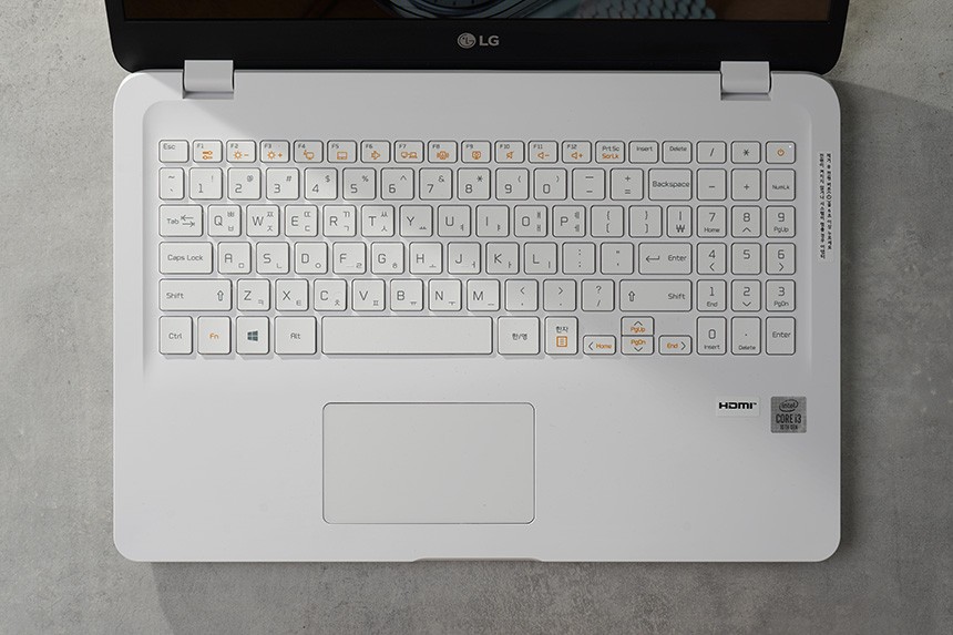 LG전자 15UD50N-GX30K 노트북의 상판은 깔끔한 화이트 컬러로 제작되었습니다. LG에서 출시되는 노트북들의 기본적인 색상이라고 할 수 있고 튀지 않는 편이어서 학생이나 직장인들이 사용해도 부담스럽지 않습니다.