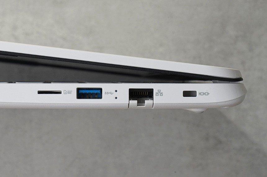 반대쪽 옆면에는 마이크로SD 카드 슬롯과 USB 3.0 그리고 기가비트 유선랜 단자가 탑재되었습니다. 확장성은 크게 부족할 것 같지는 않고 유선 랜 커넥터를 탑재하고 있다는 점이 편리한 부분입니다.