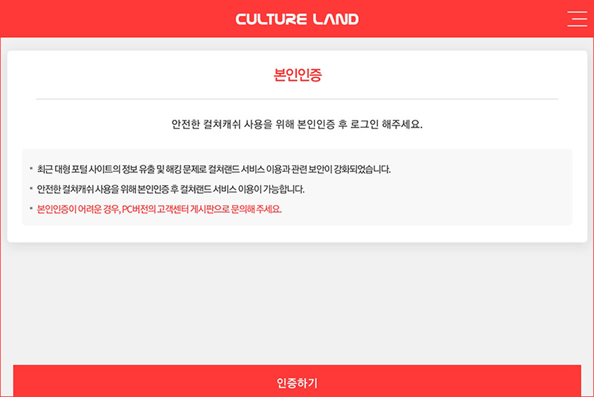 이때 컬쳐랜드에 접속해 보면 본인인증이나 비밀번호를 변경하라는 메시지가 표시됩니다. 그래서 메시지에 맞게 설정해주면 됩니다. 그리고 당연한 이야기이지만 잔액이 없으면 결제가 되지 않습니다.