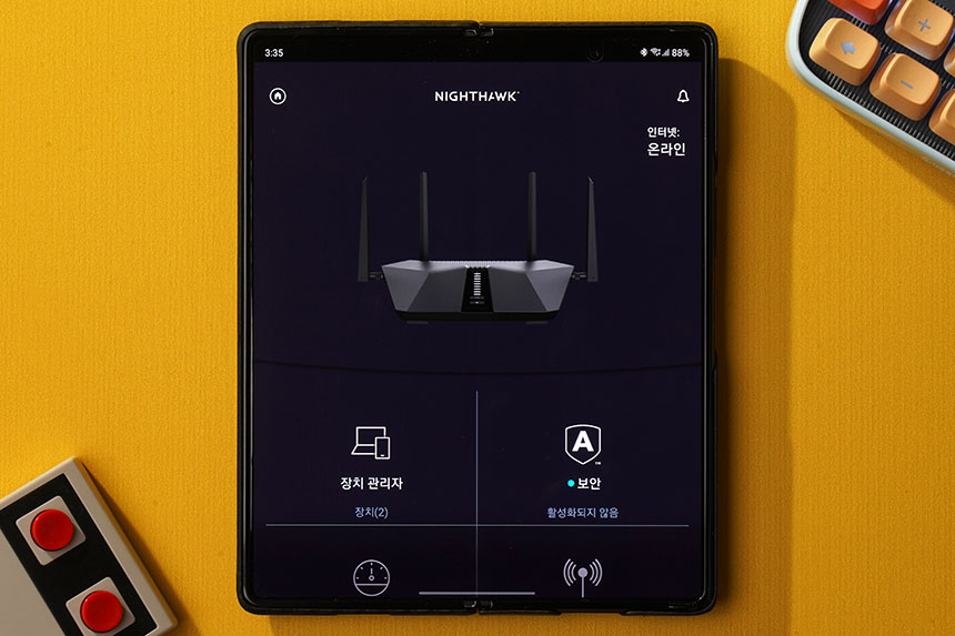 나이트호크 앱의 기본 기능을 살펴보면 장치 관리자나 보안 그리고 인터넷 속도 등 다양한 메뉴들로 구성되어 있습니다. 그래서 기본적인 작업은 관리자 페이지에 접속하지 않고도 처리할 수 있습니다.