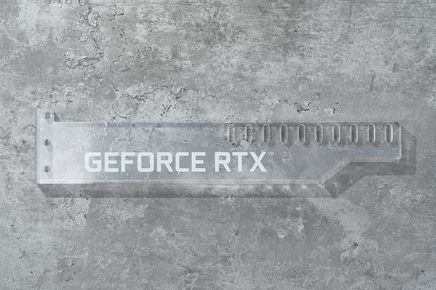 구성품에는 그래픽카드 아크릴 지지대가 동봉되어 있습니다. 이엠텍 RTX 3080 Ti 블랙 에디션이 제법 묵직한 편이어서 아래쪽을 쳐지면서 메인보드가 파손되는 것을 방지해주는 역할을 합니다.