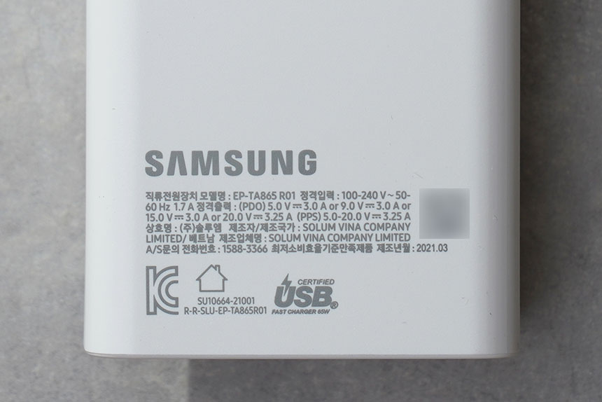 삼성 65W Gan 접지 충전기의 지원되는 고속 충전 규격을 확인해 보면 QC 4.0과 PD 3.0 그리고 PPS 들이 기술이 적용된 것을 확인할 수 있습니다. 참고만 하시길 바랍니다.