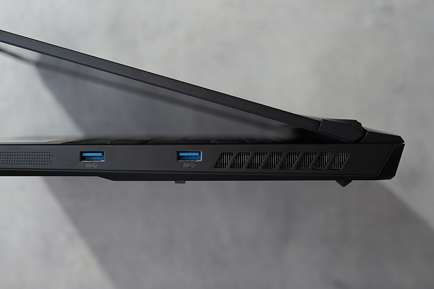 반대쪽 옆면에는 2개의 USB 3.2 단자가 배치되어 있습니다. 그리고 게이밍 노트북으로 설계되었기 때문에 옆쪽에 큼지막한 크기의 통풍구가 배치되어 있습니다. 게임을 플레이할 때 온도는 잠시 후에 확인해 보도록 하겠습니다.