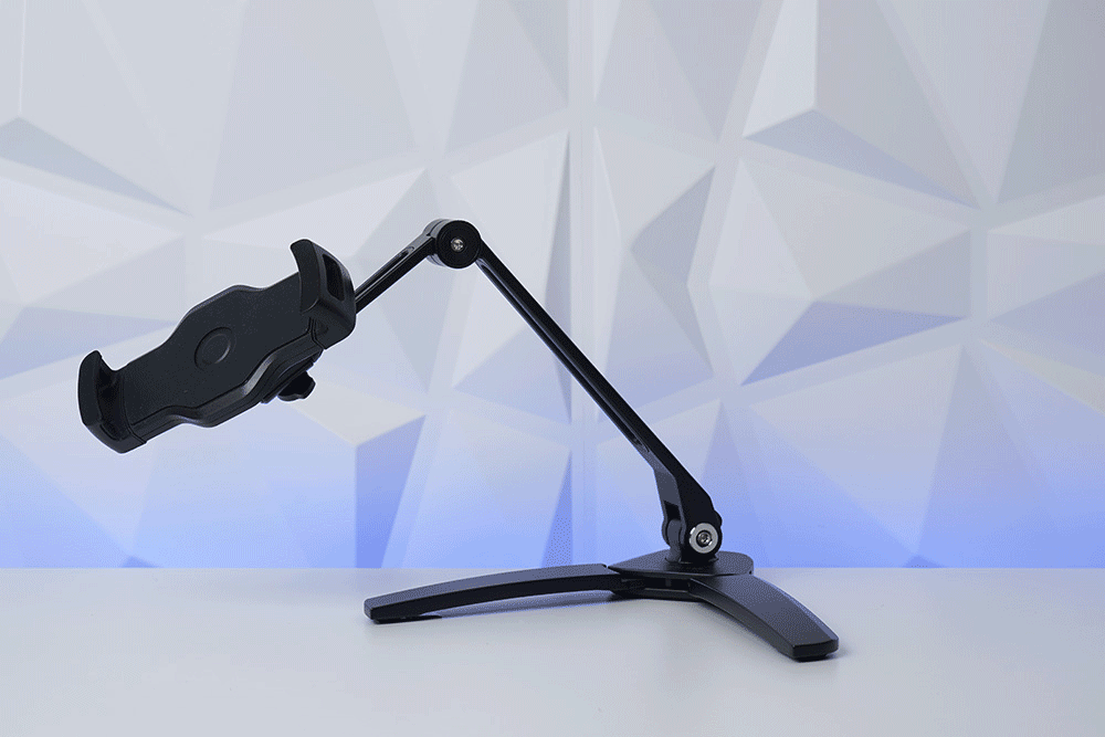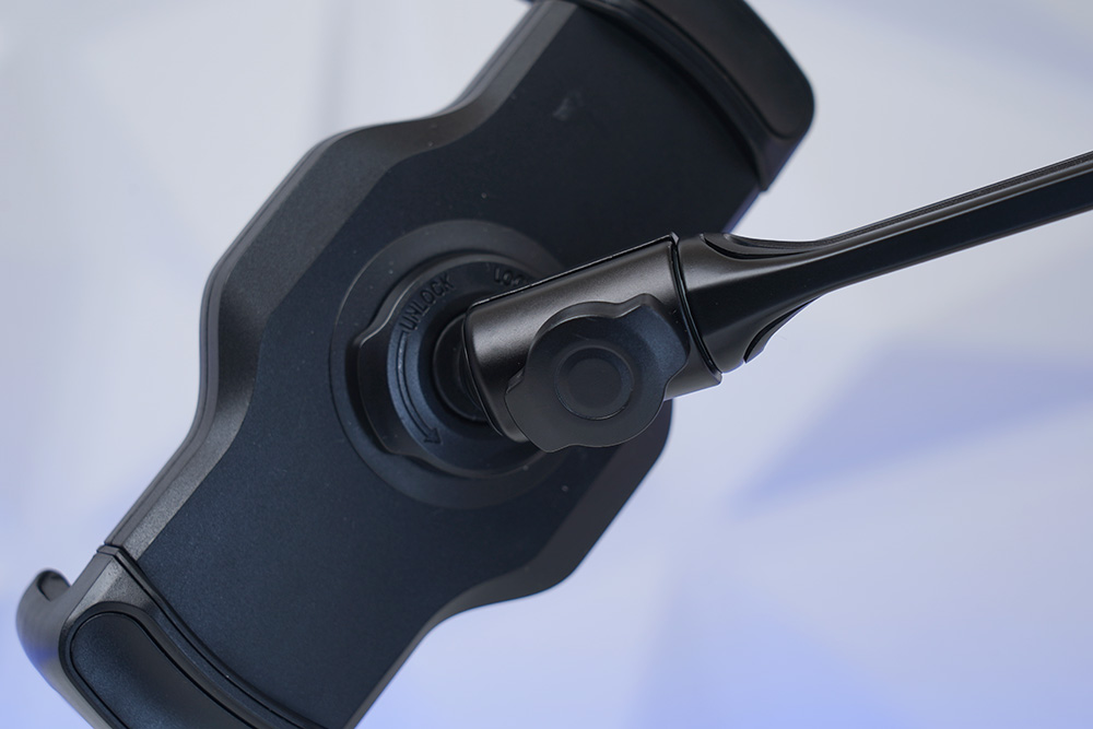 지니비 2단 거치대 GTS2의 헤드를 연결하는 부분에는 전방위 각도 조절이 가능한 홀 헤드가 부착되어 있습니다. 그래서 자신이 원하는 각도로 스마트폰이나 태블릿을 조절할 수 있습니다.