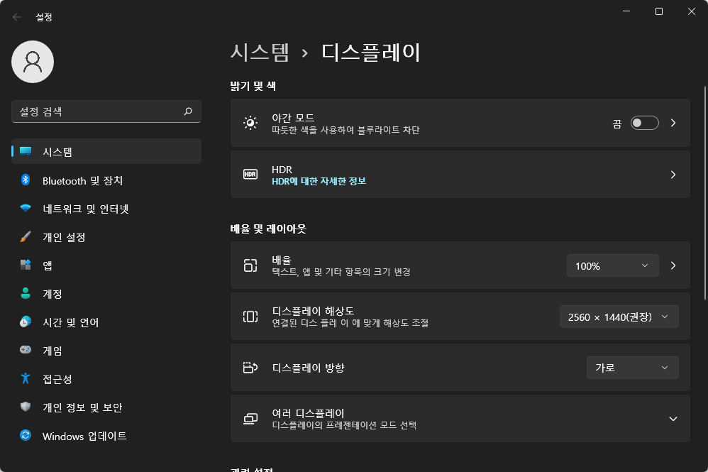 그리고 로우블루 모드를 이용하면 눈의 피로를 조금 줄여줄 수 있습니다. 그런데 색상의 정보도 조금 달라지기 때문에 사진이나 동영상 콘텐츠를 편집할 때는 사용하지 않는 것이 좋습니다.