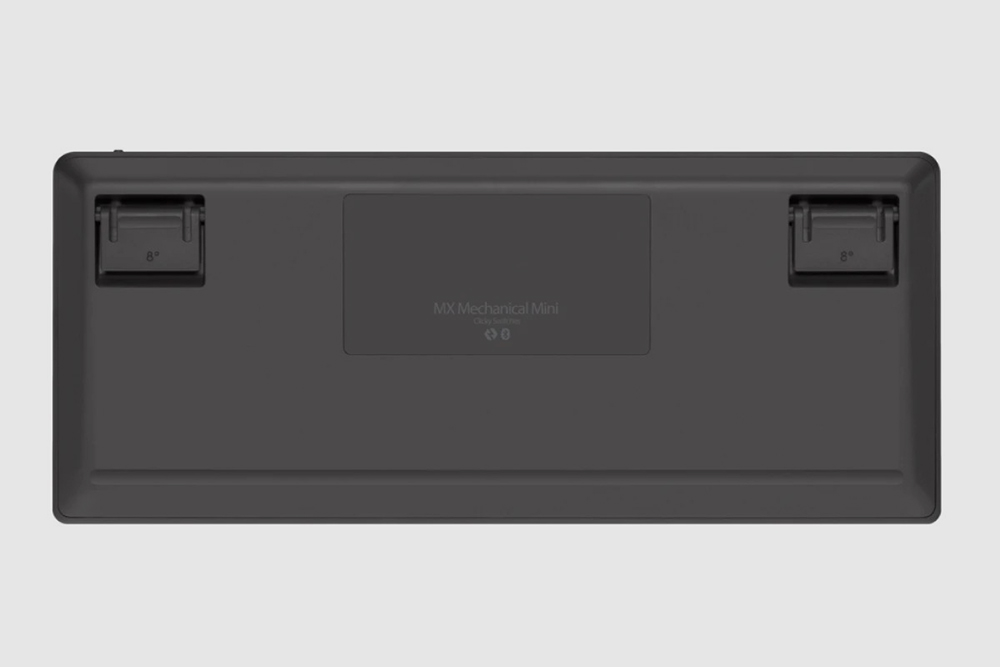 바닥을 살펴보면 높이를 8도 정도 조절할 수 있는 지지대가 배치되어 있습니다. 그리고 최근에 품절 사태를 부른 Logi Blot USB 수신기나 블루투스 기능을 이용해서 최대 3대의 디바이스에 연결할 수 있습니다. 참고로 로지텍 유니파잉과는 호환되지 않으니 주의 하시길 바랍니다.