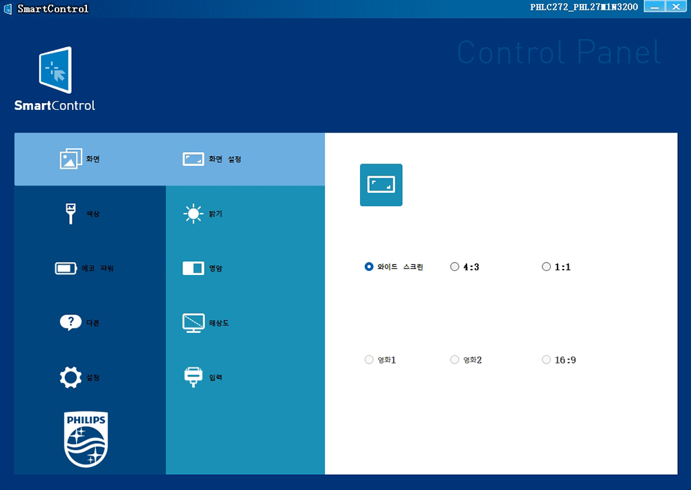 필립스 27M1N3200Z 게이밍 모니터는 스마트 컨트롤(SmartControl)이라는 전용 소프트웨어를 이용해서 OSD 버튼을 누르지 않고도 마우스를 이용해서 각종 설정을 변경할 수 있습니다. 상당히 편리한 기능 중의 하나라고 할 수 있습니다.