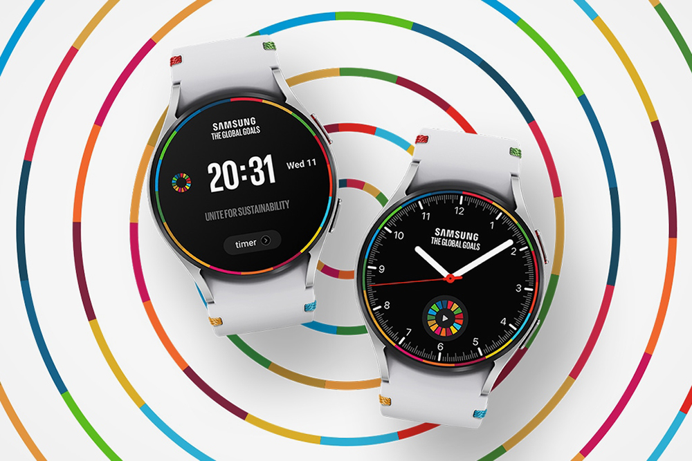 갤럭시 워치5 시리즈 글로벌 골즈 스트랩의 경우에는 UN의 17가지 글로벌 골즈를 상징하는 제품이라고 할 수 있습니다. 그래서 판매액의 5%는 빈곤 퇴치와 기아 대책, 인권 향상, 기후 위기 해결 등을 위한 기부금으로 활용될 예정이라고 합니다.