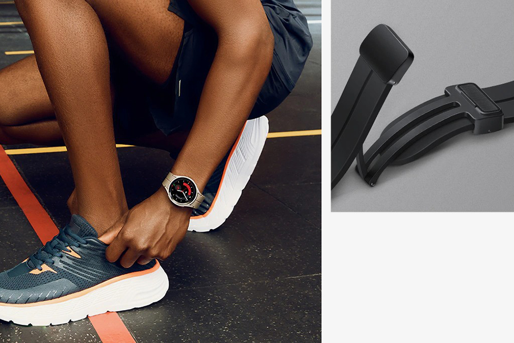 갤럭시 워치5 프로는 스포츠에 최적화된 모델이라고 할 수 있습니다. 그래서 D 버클 스포츠 스트랩의 경우에도 땀에 강한 불소고무 소재와 티타늄으로 제작되었습니다. 그리고 자석을 통해서 고정할 수 있다는 점이 편리한 부분입니다. 참고로 가격은 88,000(삼성닷컴 회원가 85,300원)입니다.