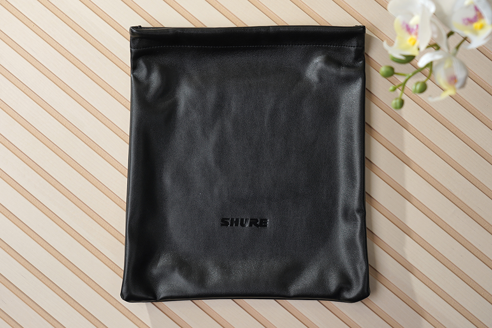 슈어 SRH840A 모니터링 헤드폰의 구성품을 살펴보면 휴대용 파우치가 하나 포함되어 있습니다. 제법 큼지막한 편이고 헤드폰을 사용하지 않을 때는 흠집이 생기지 않도록 넣어서 보관하는 것이 좋을 것 같습니다.