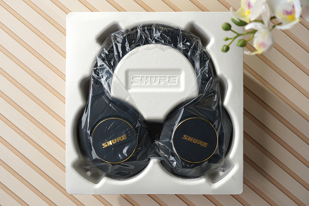 박스를 개봉하고 내부를 확인해 보면 슈어 SRH840A 모니터링 헤드폰이 비닐과 함께 완충재에 수납된 것을 확인할 수 있습니다. 그래서 택배 등으로 배송받아도 제품 자체에 문제가 생길 우려는 적은 편입니다.