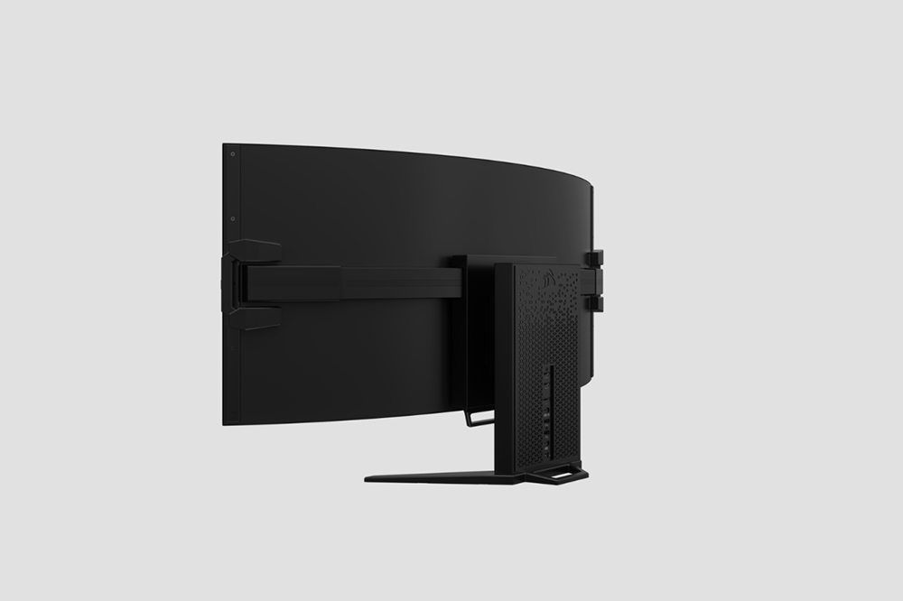 커세어 45WQHD240 OLED 모니터의 가장 큰 특징은 옆쪽에 배치된 손잡이를 이용해서 수동으로 최대 800R까지 벤딩을 해서 사용할 수 있다는 점입니다. 그래서 게임을 플레이할 때 몰입감을 더욱 높일 수 있습니다.
