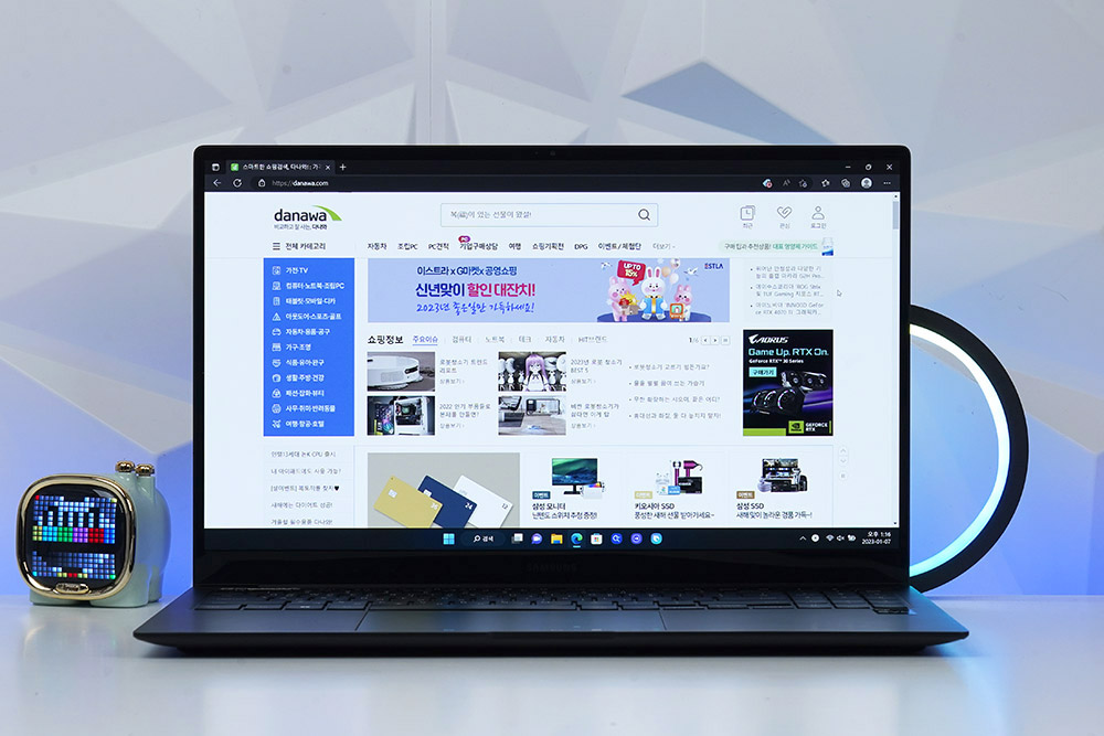 삼성전자 갤럭시북2 프로의 두께는 13.3mm로 상당히 슬림한 편이고 무게도 약 1.18kg으로 가볍습니다. 휴대성이 좋은 인텔® Evo™ 플랫폼 기반 노트북이라서 야외 활동이 많은 분께 적합한 제품이라고 판단되었습니다.