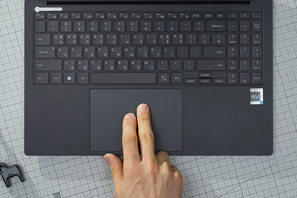 삼성전자 갤럭시북2 프로의 키보드 키감은 깔끔한 느낌을 주는 편입니다. 그래서 장시간 타이핑을 해도 크게 피로할 것 같지는 않습니다. 그리고 클릭 패드는 큼지막한 편이어서 사용하기 편리합니다.