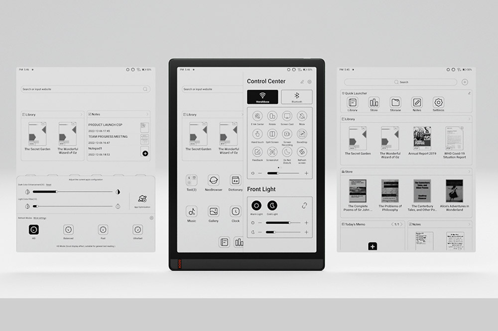 Onyx BOOX Tab X의 가장 큰 장점은 13.3인치 2200 x 1650(207 DPI) 해상도의 백라이트 Carta1250 스크린을 탑재했고 글래스 커버가 적용되었다고 합니다. 사실 전자잉크 디스플레이의 내구성이 상당히 약한 편인데요. 유리로 커버한 것을 보입니다.