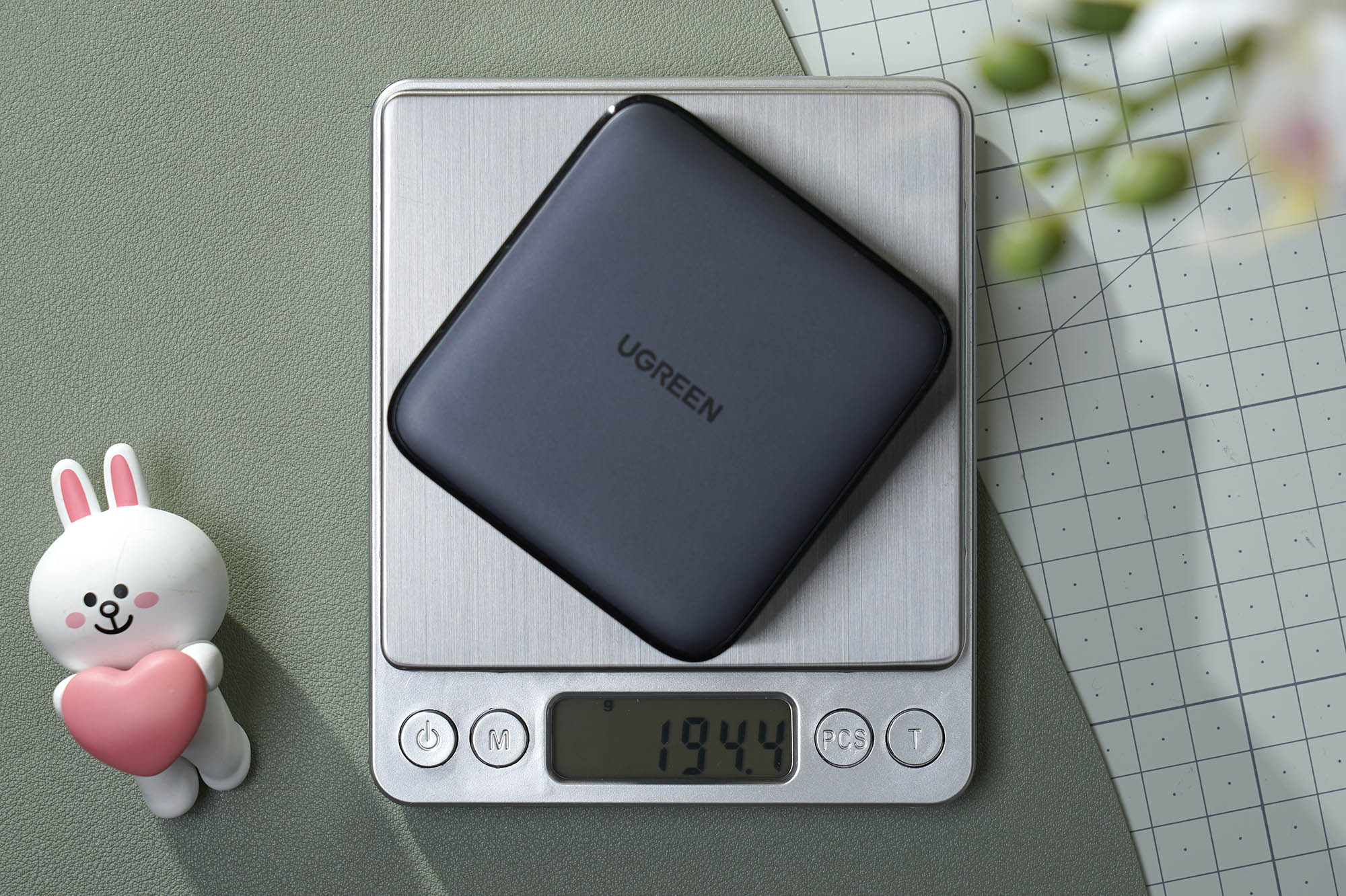 유그린(UGREEN) 65W GaN 충전기의 크기는 74.5 x 71 x 29.1mm이고 무게는 약 194g으로 측정되었습니다. 상당히 콤팩트한 편이어서 야외 활동이 많은 분에게 적합할 것으로 예상합니다.