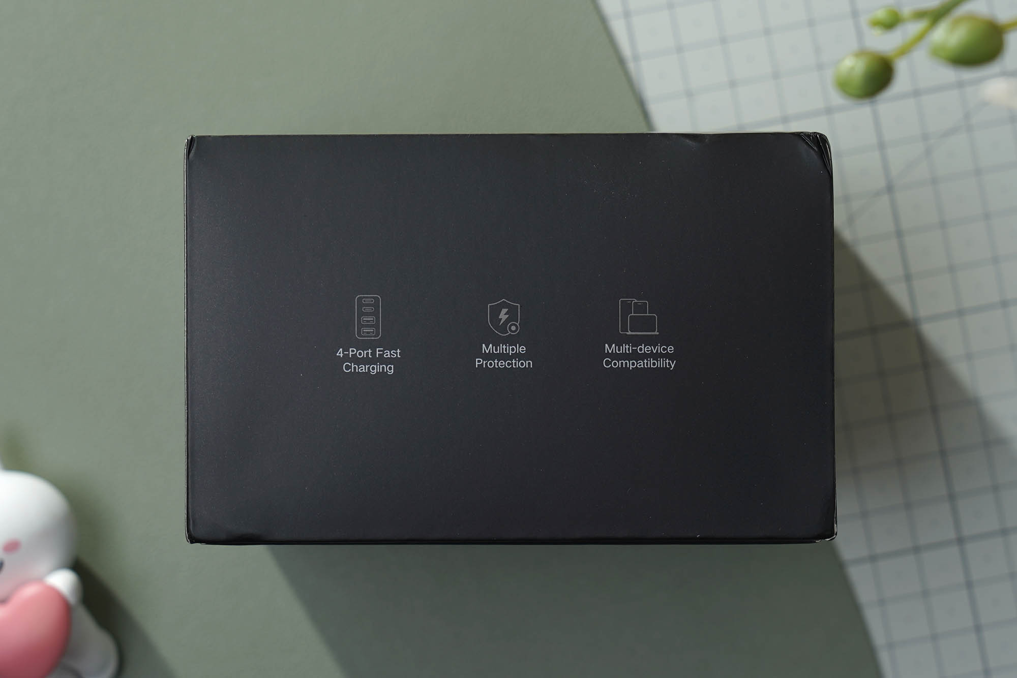 반대쪽 옆면을 살펴보면 고속 충전 기능을 이용해서 노트북이나 태블릿 그리고 스마트폰을 충전할 수 있습니다. 그리고 질화 갈륨(GaN) 기술이 적용되어서 크기에 비해서 상당히 고성능 제품이라고 할 수 있습니다.