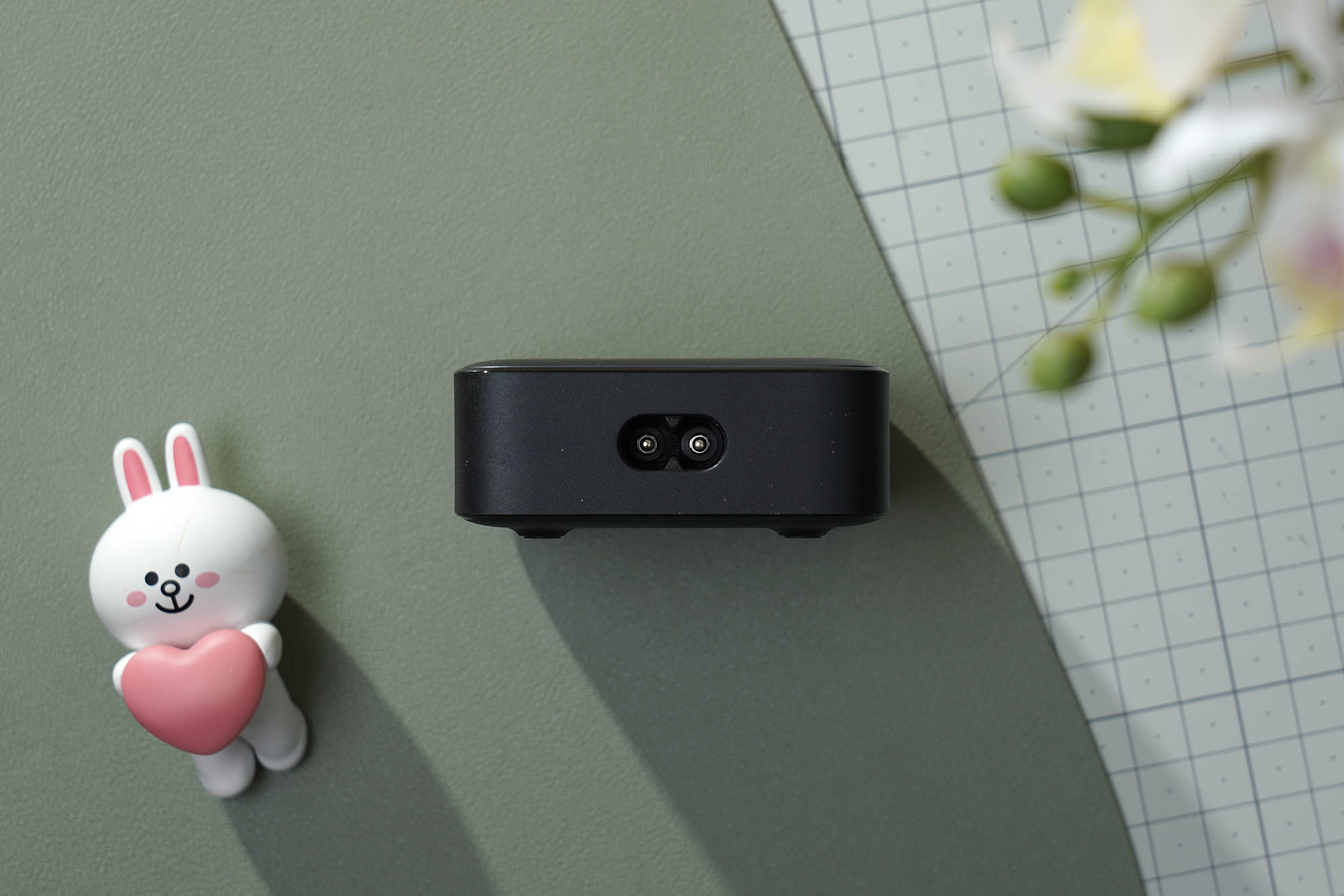 반대쪽 옆면에는 시중에서 손쉽게 구할 수 있는 8자 전원 케이블 포트가 배치되어 있습니다. 돼지코 어댑터를 사용하고 싶지 않은 분들은 별도의 케이블을 구매해서 사용하는 것을 추천합니다.