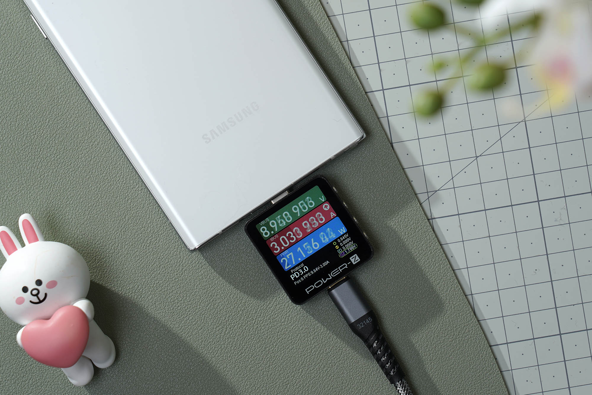 실제로 USB-C1 포트를 이용해서 다양한 제품들을 충전해 보았습니다. 우선 삼성 갤럭시 S22 울트라 스마트폰의 경우에는 약 27W로 충전이 되었고 LG 그램 16 노트북의 경우에는 58W 청도로 충전되었습니다. 스펙에 준하는 것을 확인할 수 있습니다.