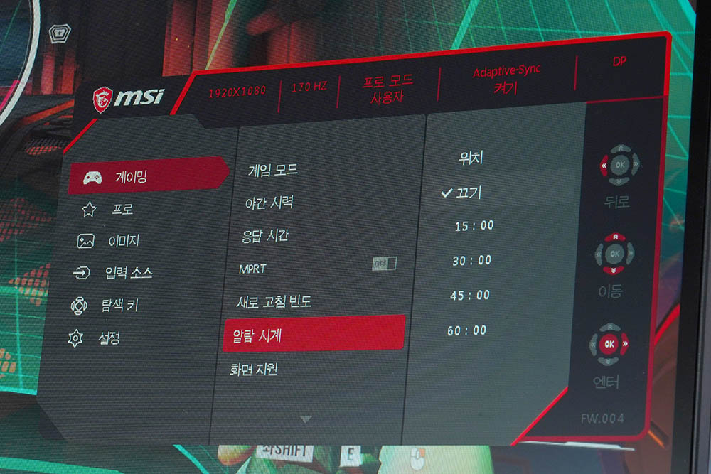 그리고 NVIDIA 지싱크호환이나 AMD 프리싱크 프리미엄 기능을 사용하려고 할 때는 게이밍 메뉴의 두 번째 페이지에 배치된 Adaptive-Sync 기능을 켜 놓아야지만 전용 프로그램에서 해당 옵션이 활성화됩니다.