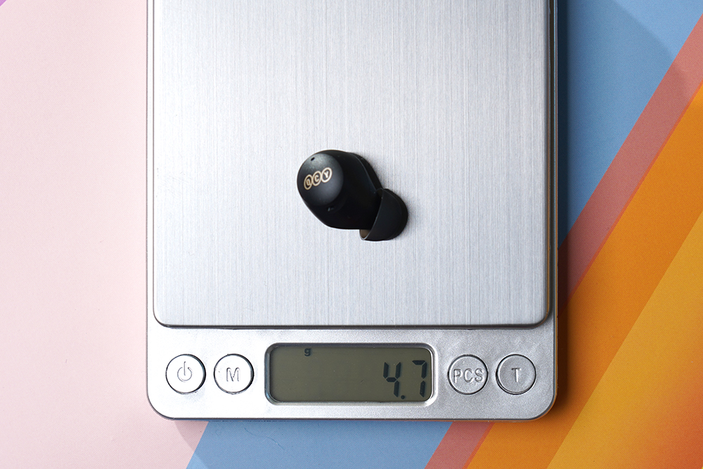 이어버드 자체의 무게는 약 4.7g으로 측정되었습니다. 갤럭시 버즈나 에어팟 프로와 같은 제품과 비교해서 조금 가벼운 편입니다. 무게 때문에 불편함을 느끼지는 않으리라고 예상합니다.