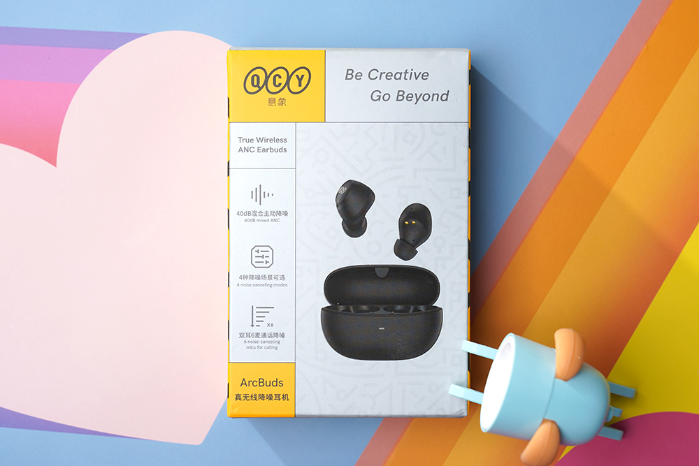 QCY HT07 노이즈 캔슬링 이어폰의 박스는 다른 큐씨와이의 제품들과 크게 다르지 않은 편입니다. 우선 트루 와이어리스 ANC 이어버즈라는 문구와 함께 40dB의 액티브 노이즈 캔슬링 기능을 제공한다는 내용들이 설명되어 있습니다.