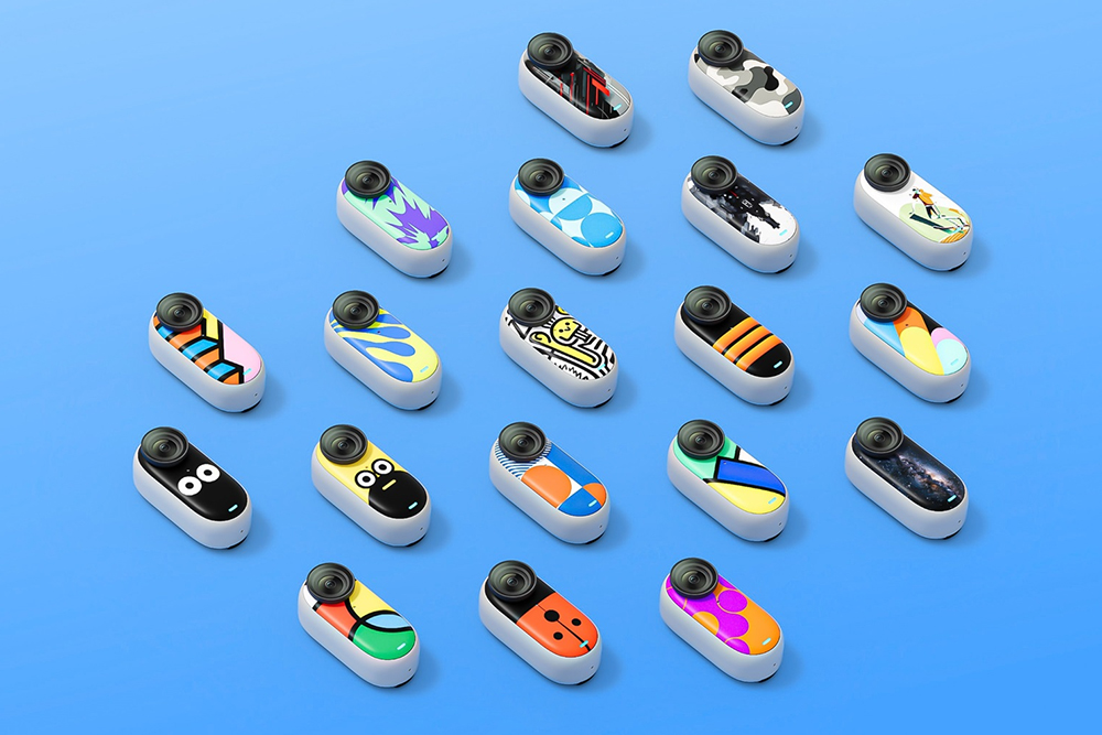 인스타360 GO 3는 몽키 테일 마운트나 ND 필터 세트, 액정보호 필름, 다이브 케이스, 펫 전용 스틱, 퀵 릴리즈, 마운트와 같은 다양한 액세서리들이 같이 출시되었고 특히 스킨을 이용해서 카메라를 커스텀할 수 있다는 점도 재미있는 부분입니다.