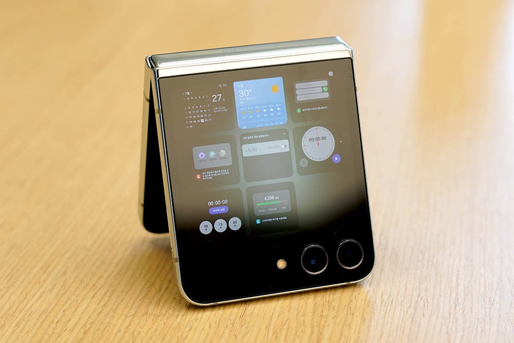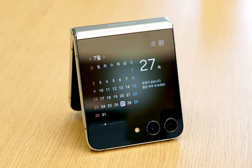 그리고 달력이나 날씨를 확인할 수 있는 기능도 갖추고 있습니다. 이전 세대의 플립4의 커버 스크린의 크기가 1.9인치였던 것과 비교하면 정보량의 차이가 어마어마하다는 것을 확인할 수 있습니다.