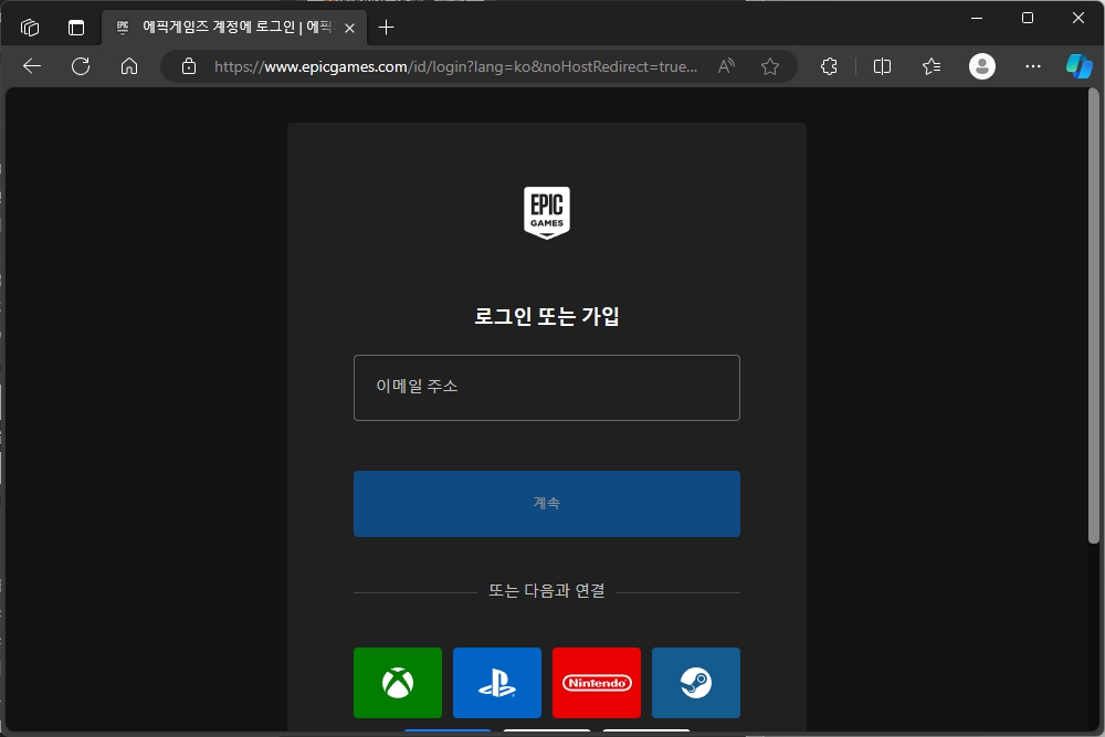 링크의 페이지에서 받기를 선택하면 에픽게임즈에 로그인을 하라는 메시지가 표시됩니다. 참고로 다양한 계정을 통해서 가입을 할 수 있고 런처를 별도로 다운로드 받지 않고도 디 이블 위딘 2를 게임 라이브러리에 추가할 수 있습니다.
