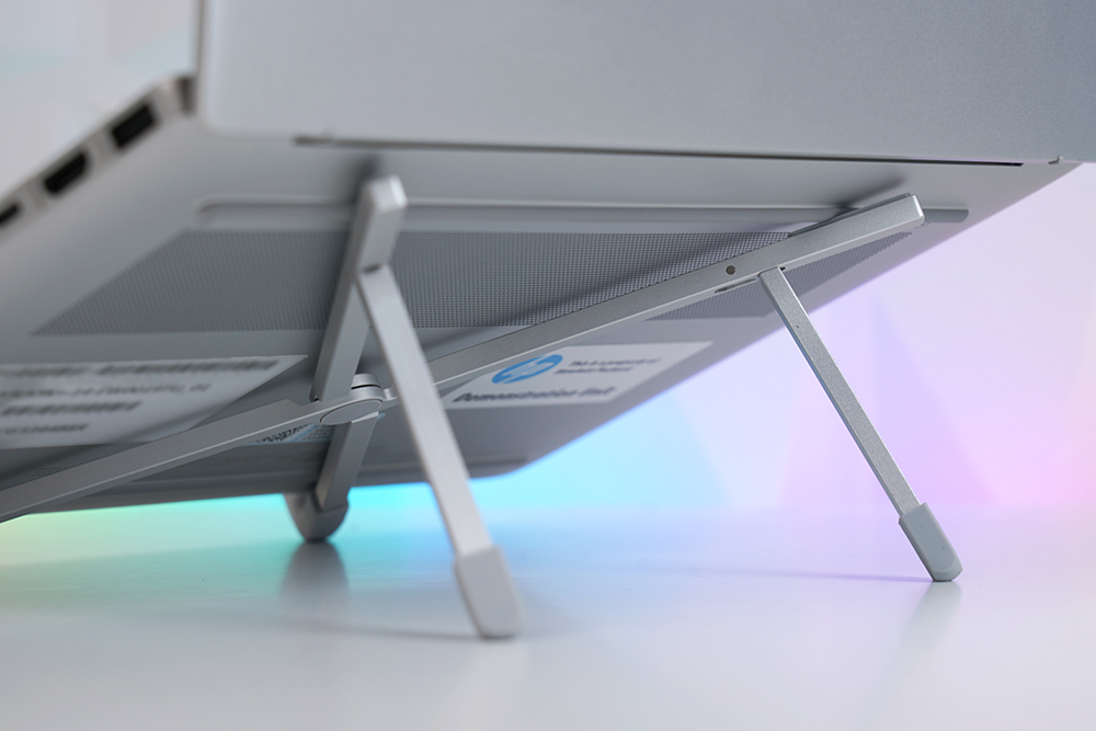 실제로 노트북과 맞닿는 부분에는 실리콘으로 제작된 패드가 배치되어 있어서 흠집이 생기는 것을 방지해 줍니다. 실제로 최신 노트북들은 메탈로 제작되는 경우가 많은데요. 금속과 금속이 맞닿으면 스크레치가 생길 가능성이 있습니다.