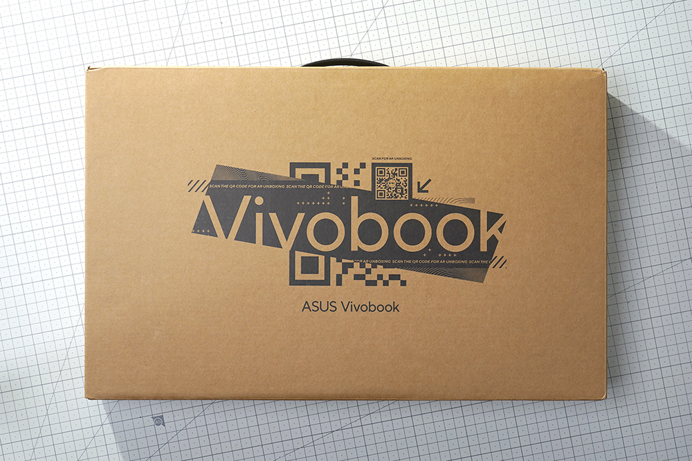 ASUS 비보북 16X K3604VA-MB145의 박스는 세련된 스타일로 디자인되었고 AR 언박싱 기능을 지원하는 QR 코드가 별도로 인쇄되어 있다는 점이 재미있는 부분이라고 생각되었습니다.