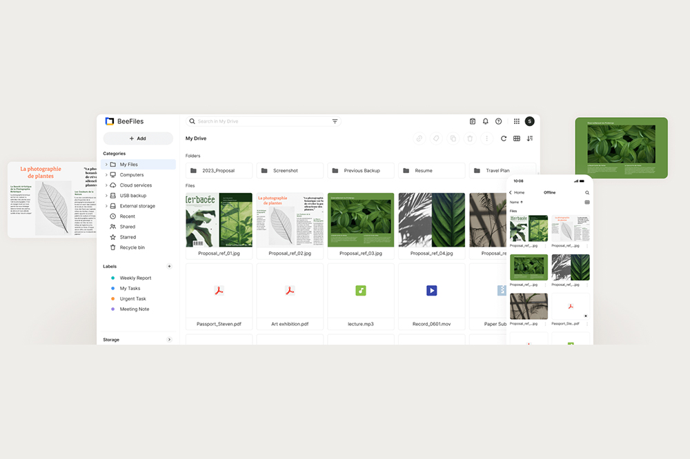 시놀로지 BeeStation BST150-4T는 데스크톱 컴퓨터나 노트북의 브라우저나 스마트폰 그리고 태브릿을 이용해서 파일을 업로드하고 100개 이상의 파일 형식의 미리보기를 지원합니다. 그리고 보안 링크를 이용해서 다른 사람들에게 파일을 공유할 수도 있습니다.