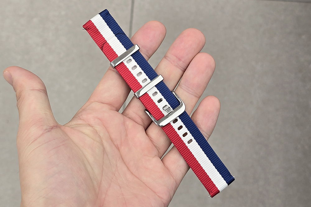 갤럭시 워치7 나토 밴드는 포멀한 옷차림과 운동복에 스마트워치를 매칭해서 사용하기를 원하는 분들을 위한 스트랩이라고 할 수 있습니다. 색상은 블루/화이트/레드, 그린/화이트, 네이비/그레이 중에서 선택할 수 있고 가격은 44,000원입니다.