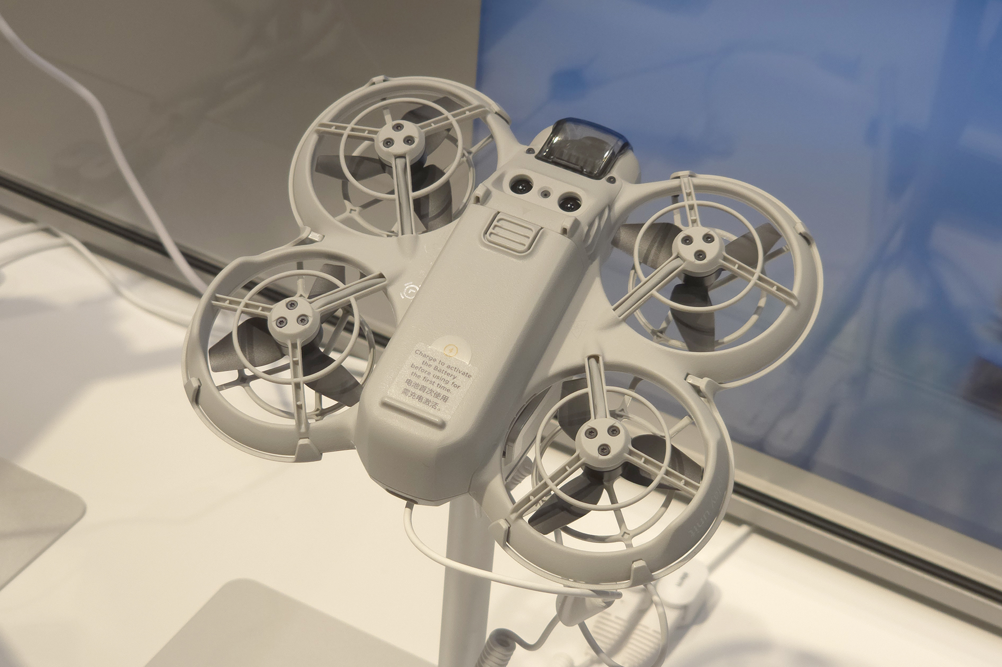 DJI NEO(네오)에는 4개의 프로펠러가 장착되어 있고 모두 가드로 보호되어 있어서 근거리에서도 상대적으로 안정적으로 사용할 수 있다는 장점이 있습니다. 그래도 손가락 등이 들어가지 않도록 항상 주의해 주어야 합니다.