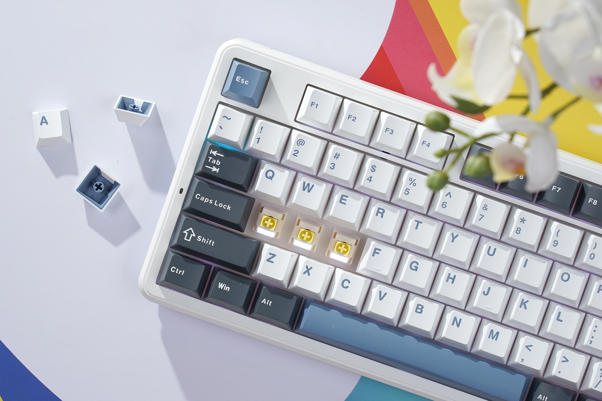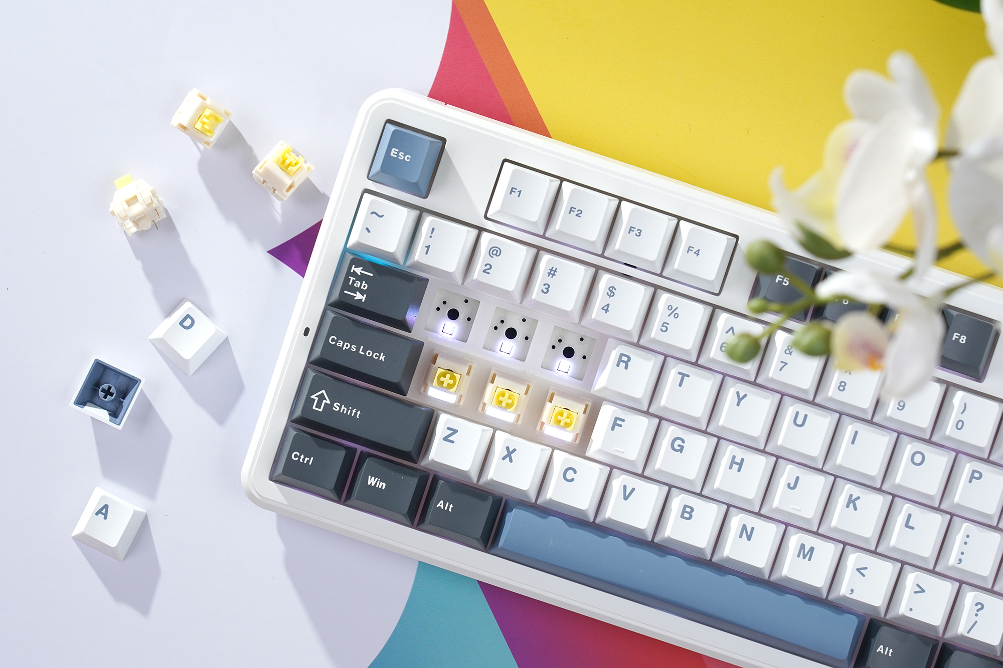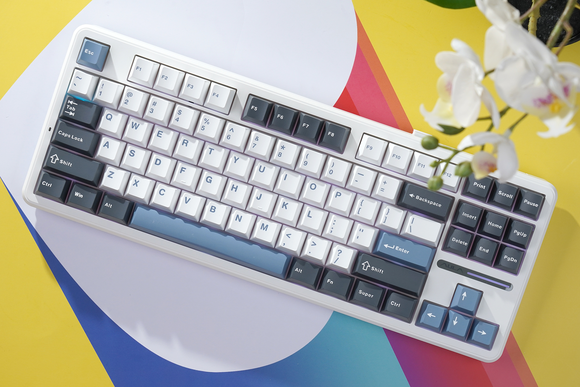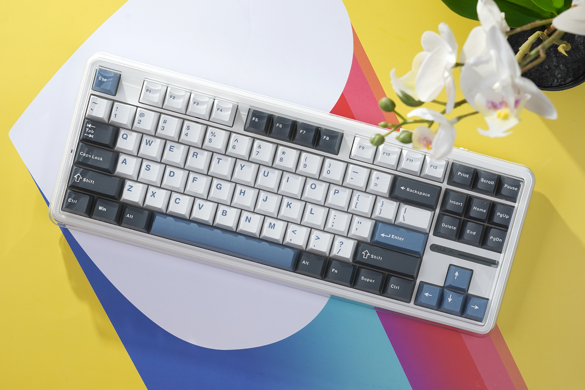 독거미 F87 PRO 유무선 키보드에는 이중사출 PBT 키캡이 적용되었는데요. 내구성이 강한 편이어서 장시간 사용해도 번들거리는 현상이 적게 발생합니다. 그리고 스위치는 TTC 신월축이 채택되었는데요. 압력이 낮은 편이고 부드럽고 경쾌한 타이핑 느낌을 제공합니다.