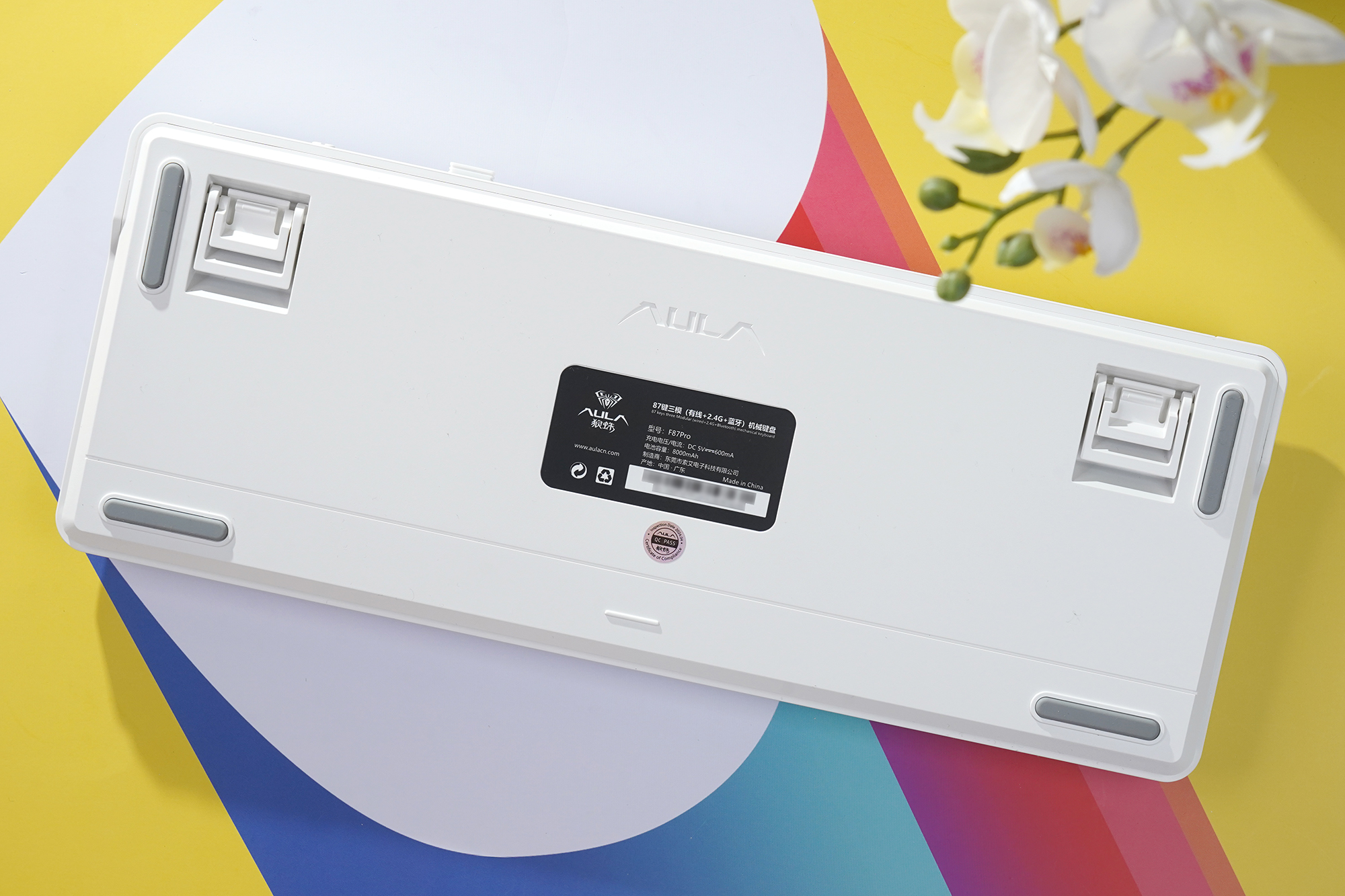 독거미 F87 PRO 유무선 키보드의 바닥을 살펴보면 모서리 부분에 고무 지지대가 배치되어 있어서 책상 위에서 잘 미끄러지지 않는 편입니다. 상식적인 이야기이지만 무게가 무거울수록 잘 밀리지 않고 안정적입니다.