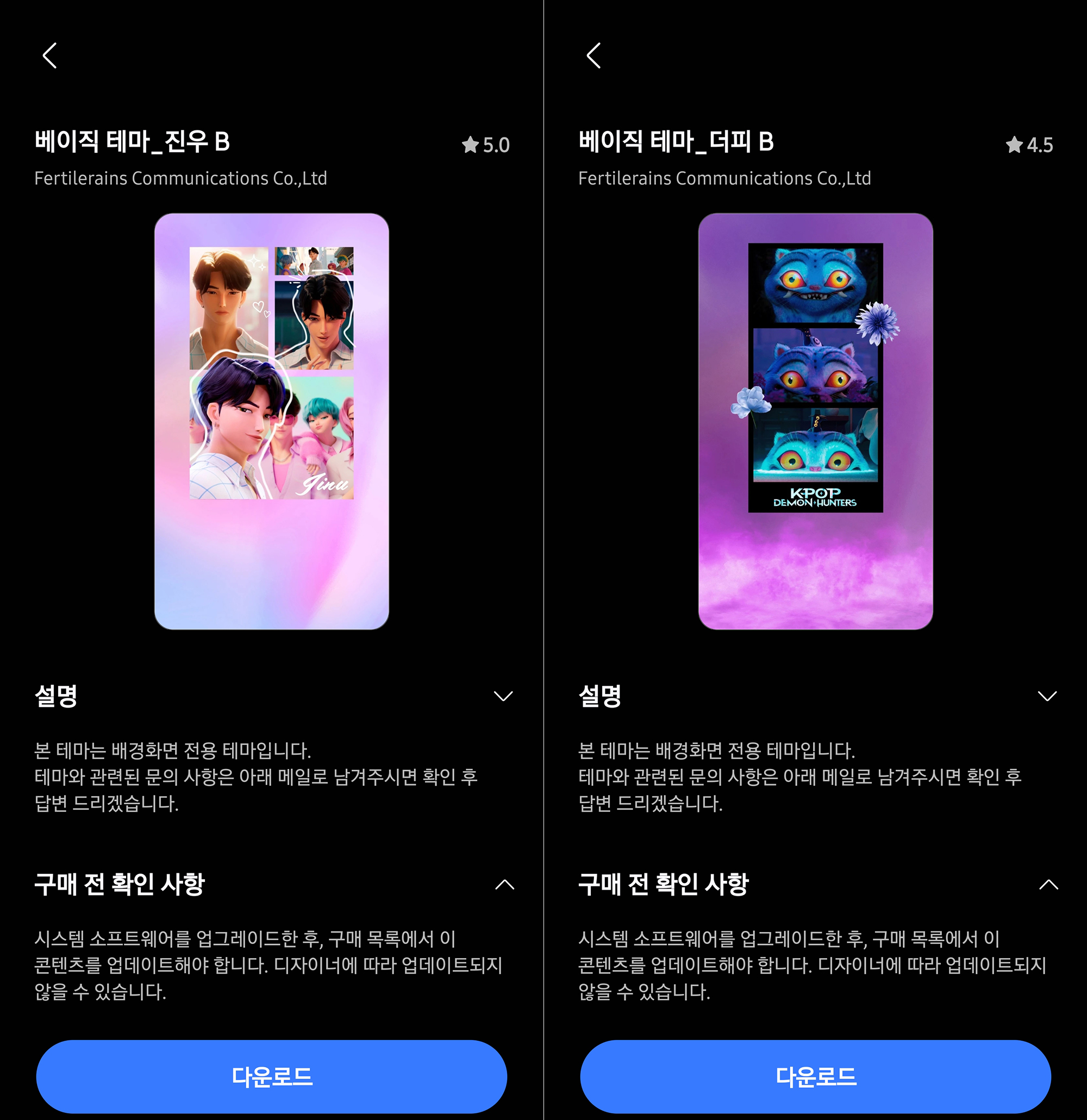 케이팝 데몬 헌터스 갤럭시 스토어 테마와 월페이퍼 다운로드 방법!
