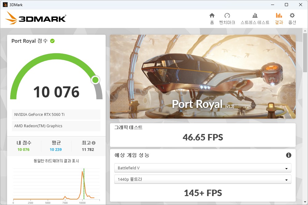 3DMARK를 이용해서 MSI RTX 5060 Ti 벤투스 그래픽카드의 성능을 확인해 보면 파이어 스트라이크(Fire Strike)는 35,537점, 타임 스파이(Time Spy)는 14,572점, 포트 로얄(Port Royal)은 10,076점, 스틸 노마드(Steel Nomad)는 3,586점, 스피드 웨이(Speed Way)는 4,122점으로 측정되었습니다.