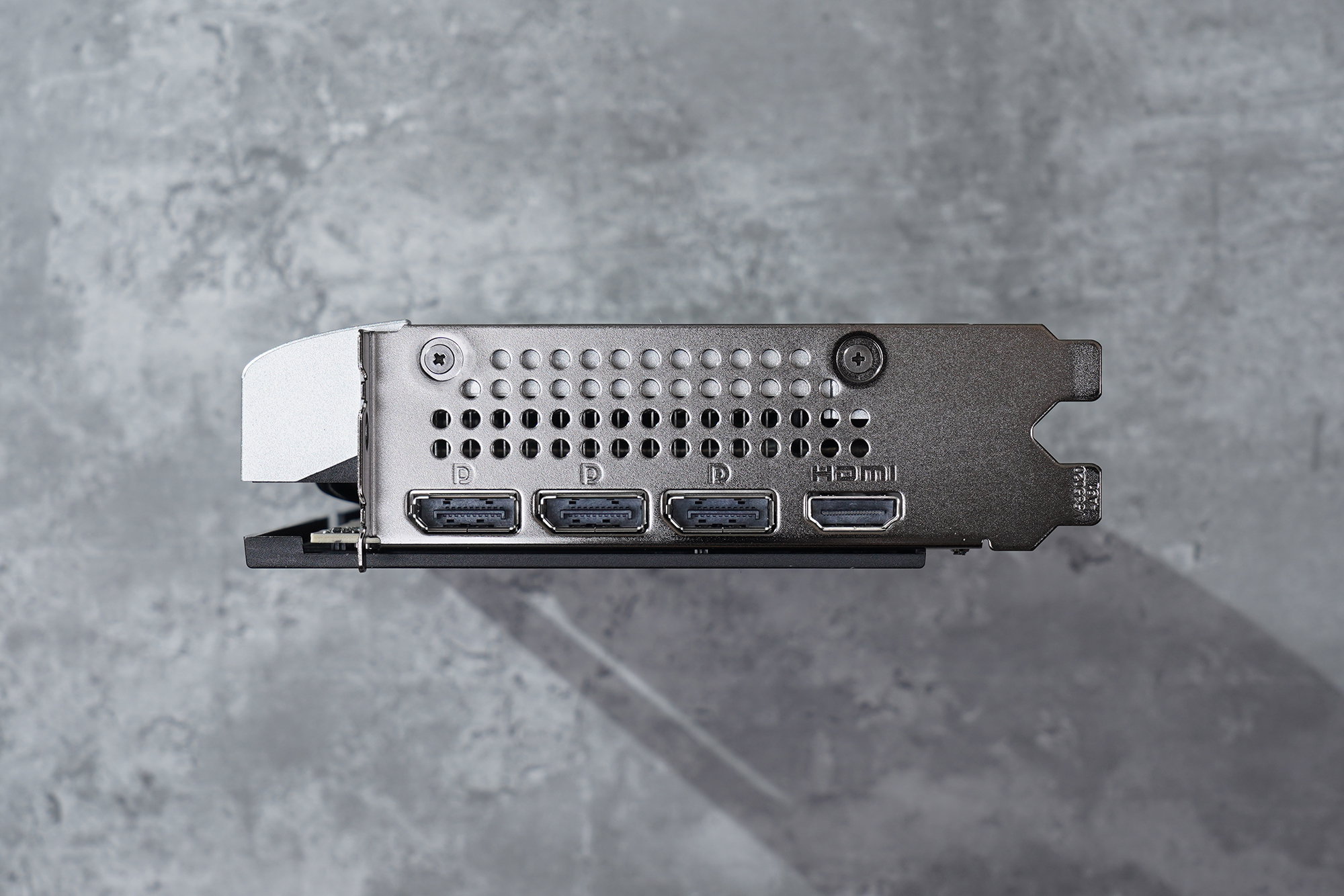 뒤쪽에는 메탈로 제작된 백플레이트가 장착되어 있는데요. 그래픽카드의 각종 소자들을 보호하는 역할을 하는 것은 물론이고 히트 싱크 부분이 일부 제거되어 있어서 발열 해소에 도움을 줍니다.