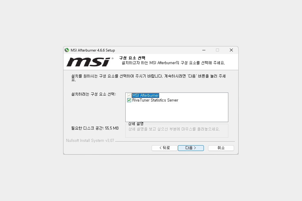 MSI 애프터버너는 일부 한글화되어 있기 때문에 설치할 때 한국어를 선택해 주면 조금 더 편리하게 활용할 수 있습니다. 사실 영어로 설정해도 크게 어려운 부분은 없는 편입니다.