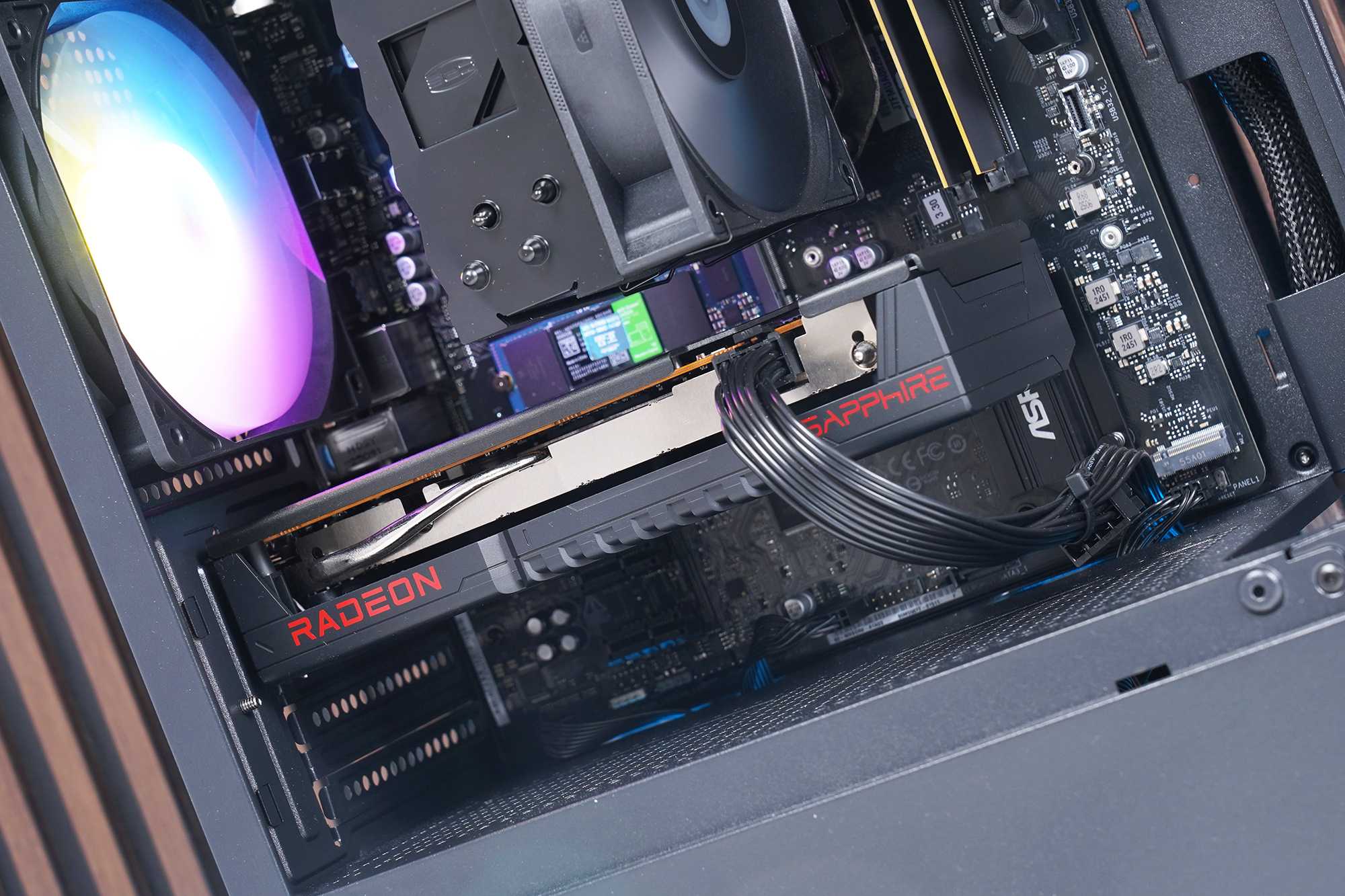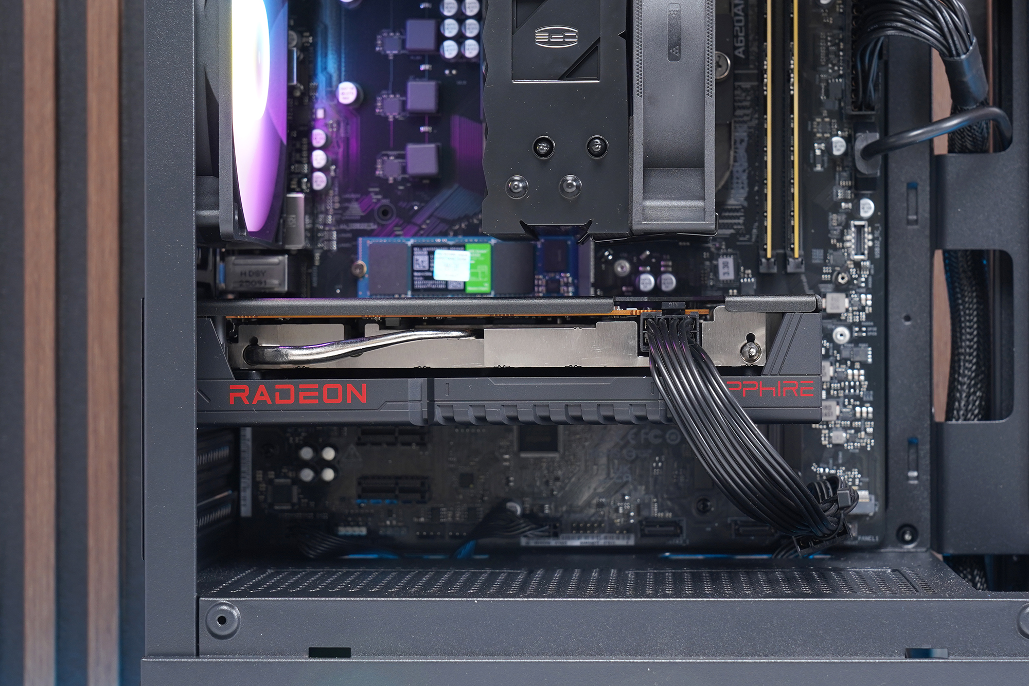 사파이어 라데온 RX 9060 PULSE 8GB 그래픽카드의 크기는 콤팩트한 편이어서 작은 사이즈의 케이스에도 크게 부담 없이 장착할 수 있고 특히 어항형 케이스에서 사용하면 좋을 것 같습니다.
